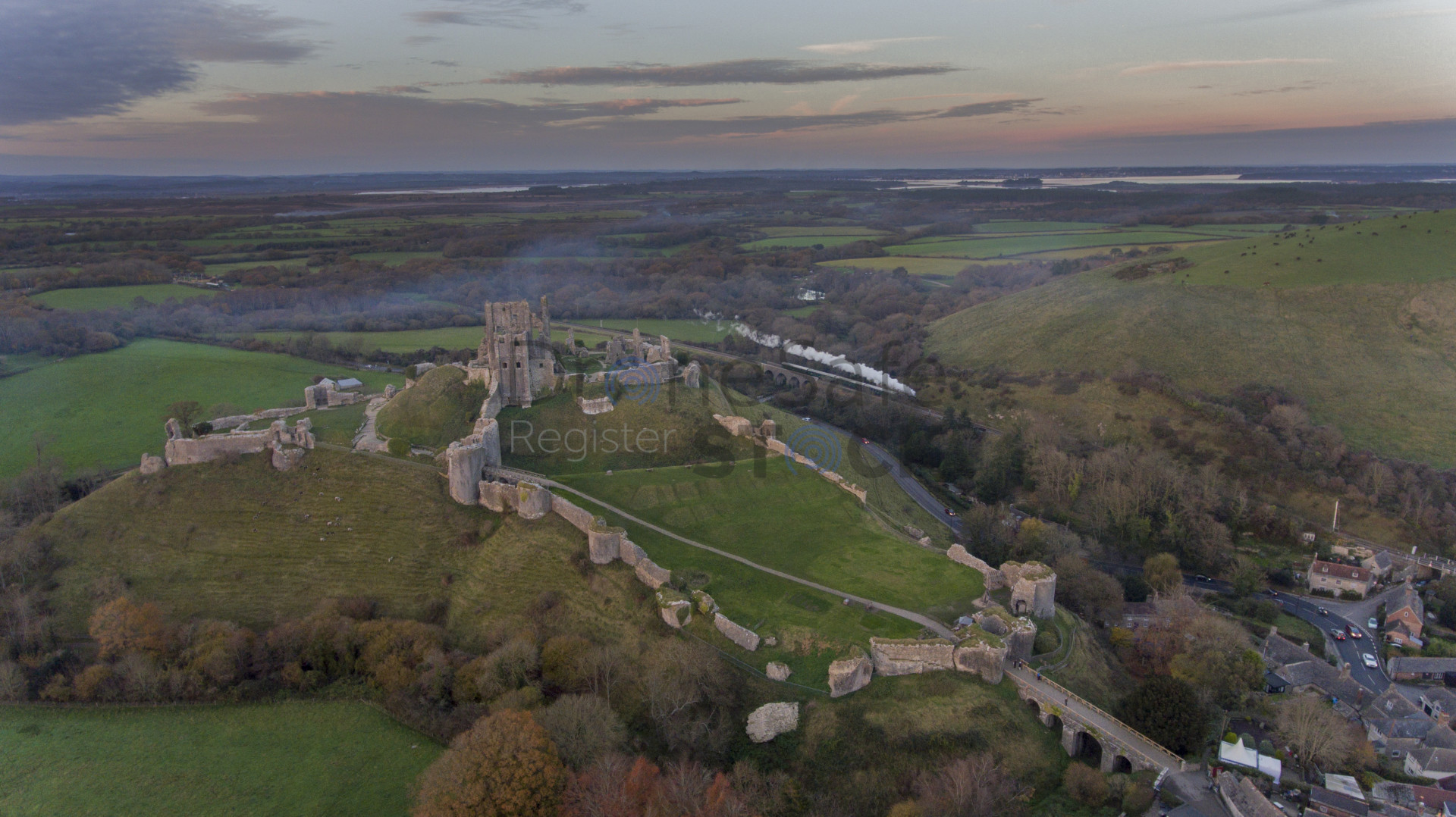 Autumnal Day Looking At Corfe Castle & Steam Train