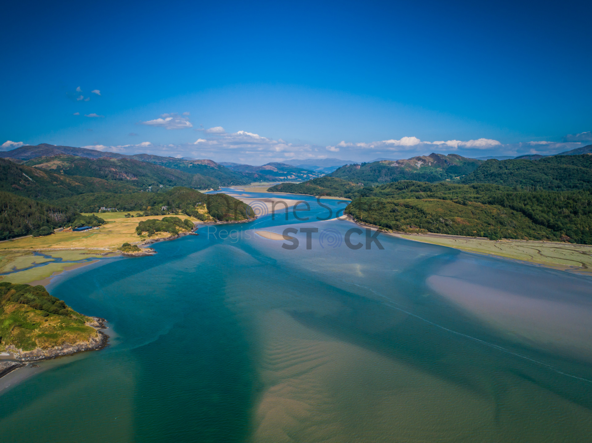 The final stretch of Afon Mawdach leaving the hills of Wales and turning into an estuary.