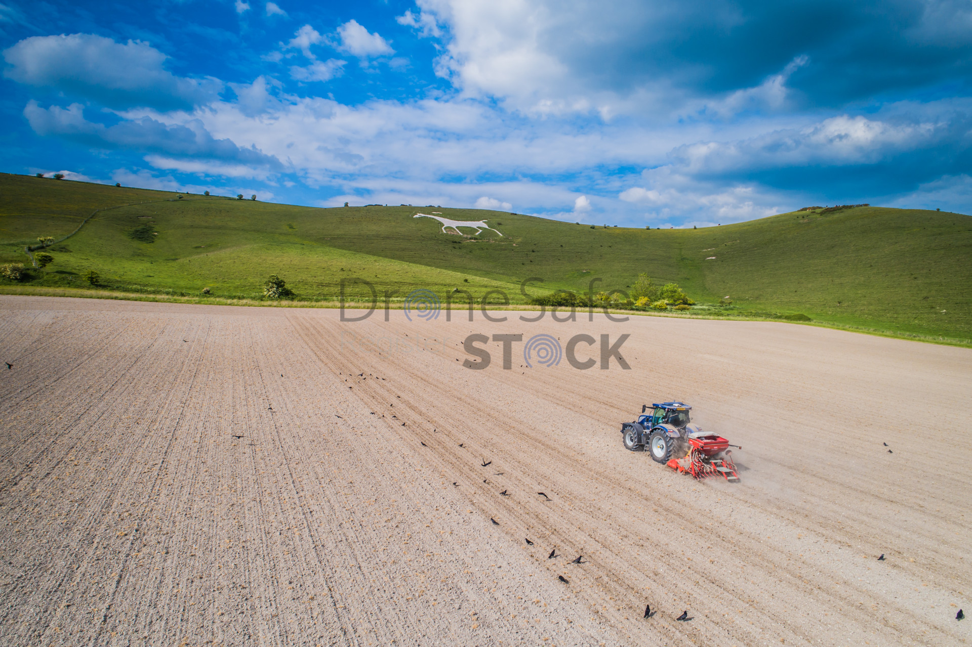 Farming in the shadow of Alton Barnes White Horse, Wiltshire.