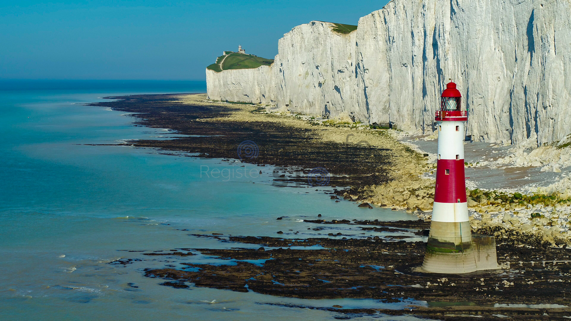 Beachy Head Lighthouse at low tide