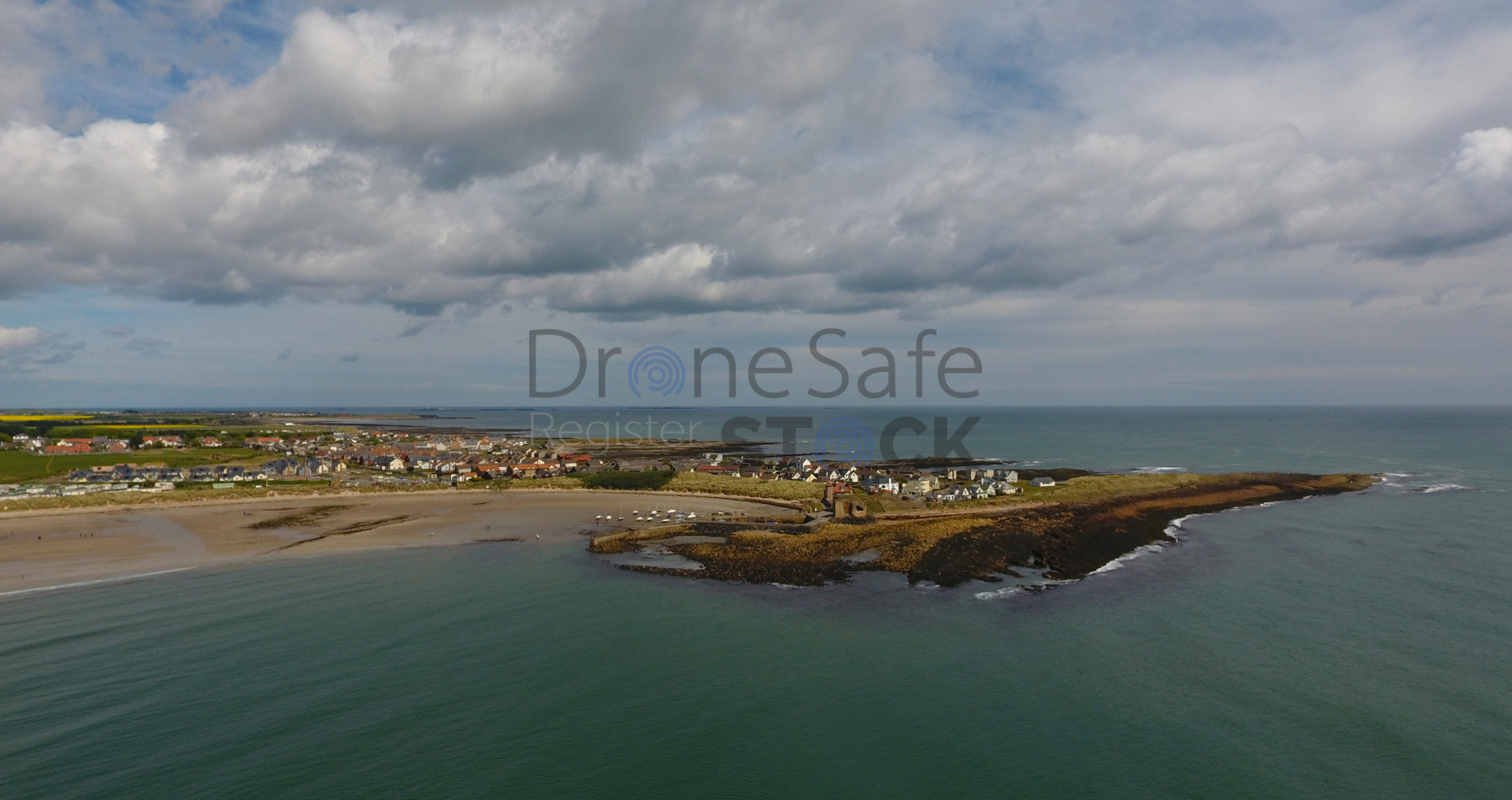 Aerial image of the bay and the village of Beadnell, Northumberland