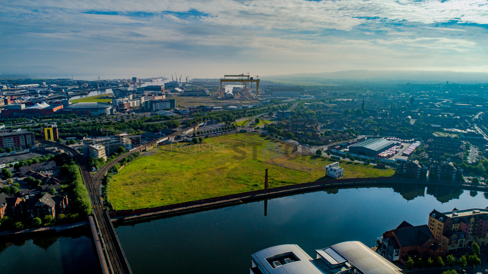 Belfast from the River Lagan looking towards the Docks.