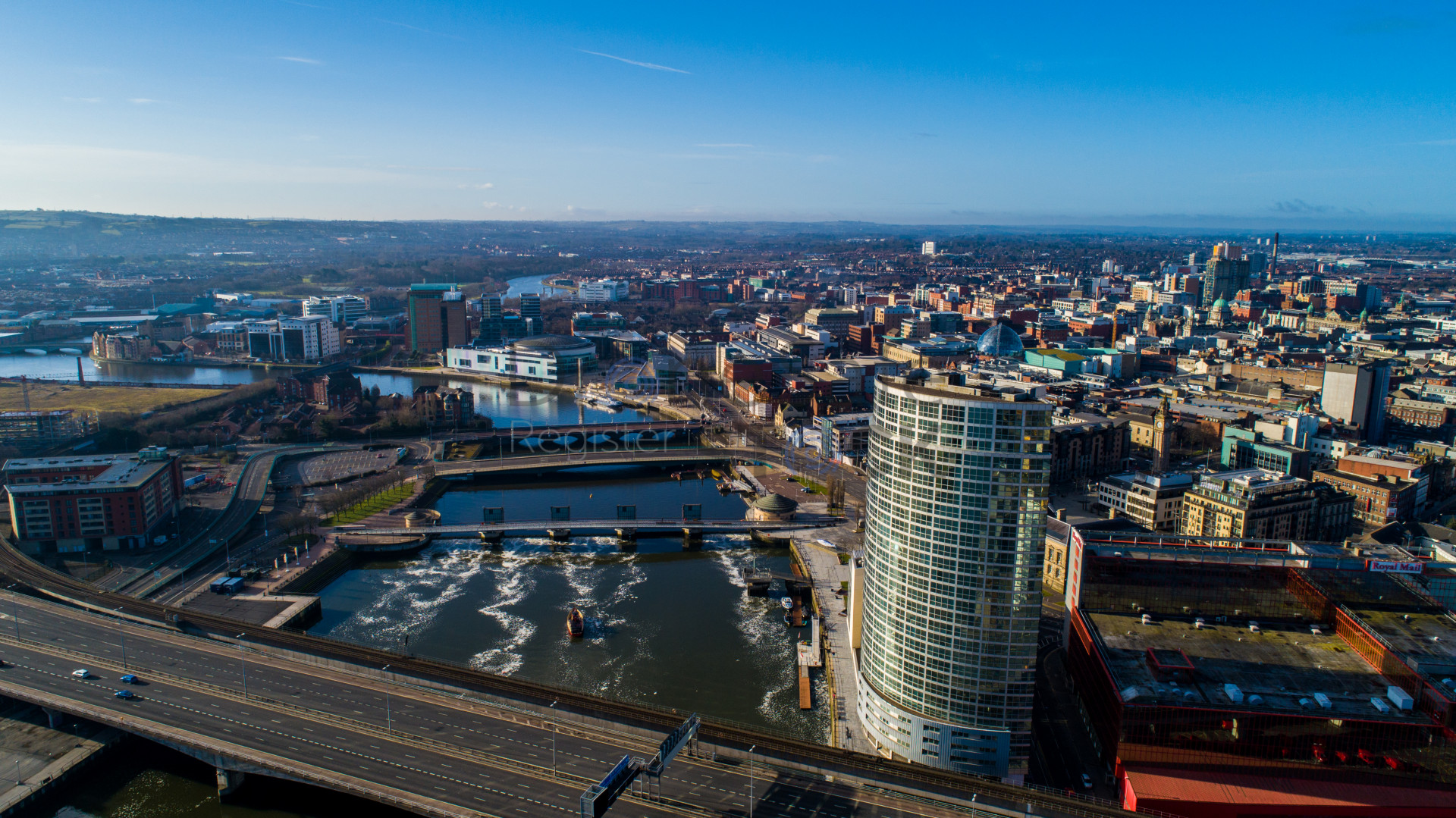 Looking towards Belfast, acrtoss Lagan Bridge, Northern Ireland
