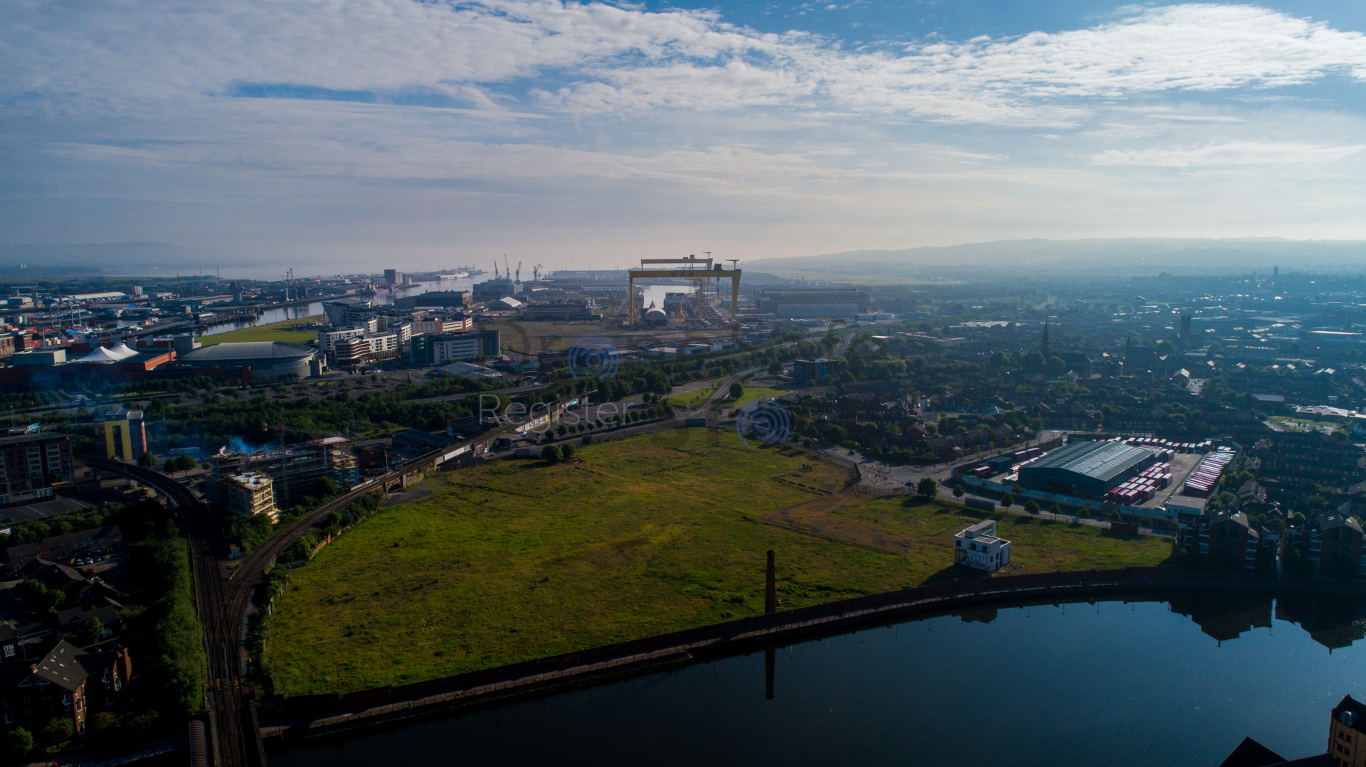 Looking towards Belfast Docks and Harland & Wolf Ship Yards, Belfast.