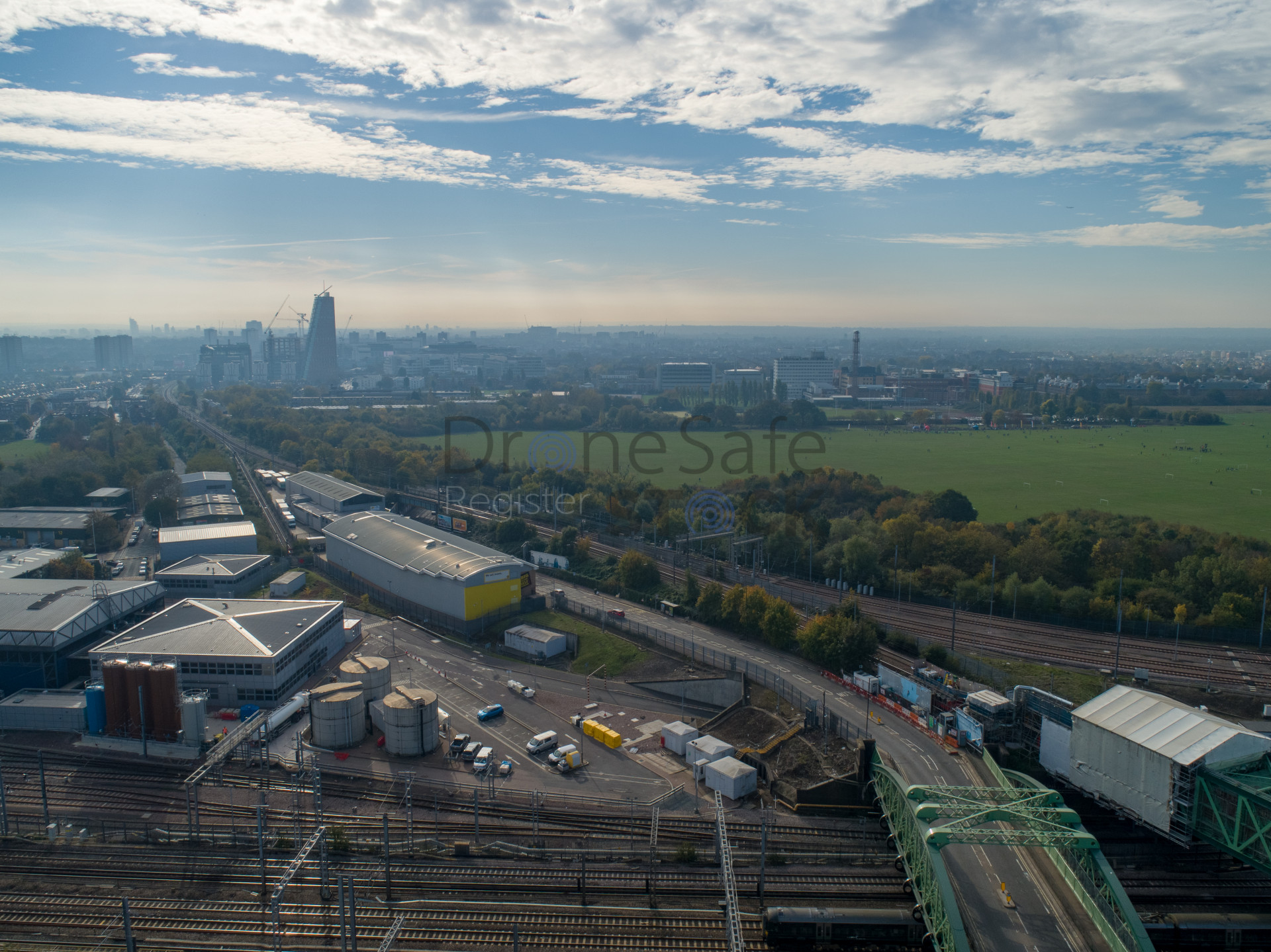 Big Yellow storage in White City, with Wormwood Scrubs in the background