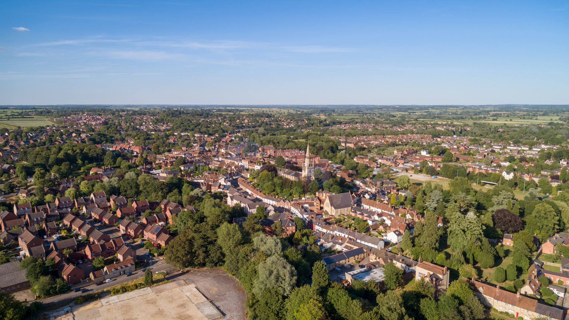 A view of the old quarter of Buckingham, dominated by the church