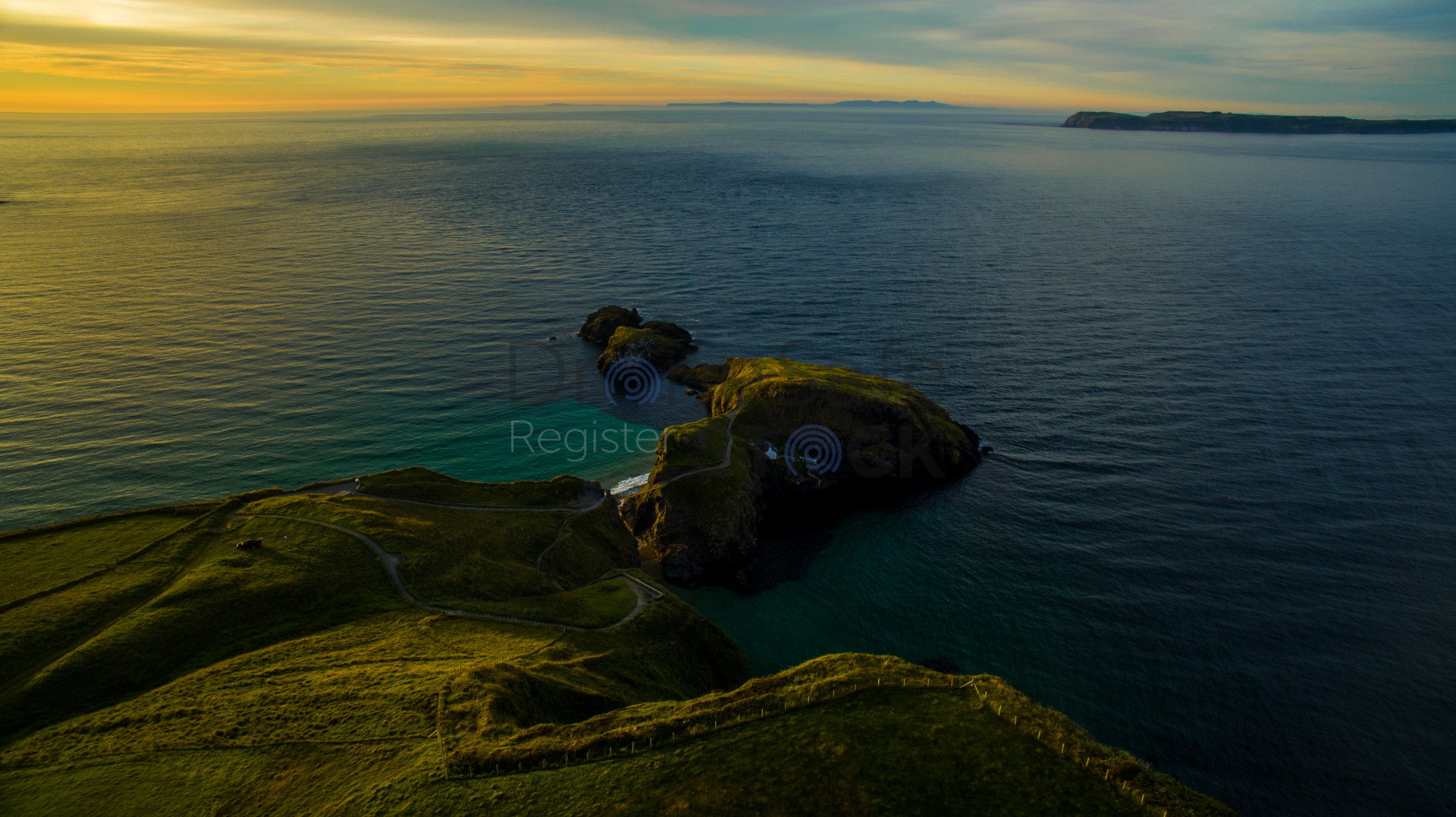 Carrick-a-rede with with Rathlin Island in the background
