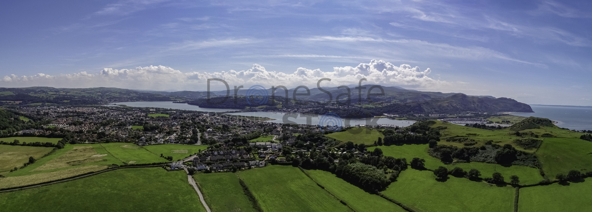 Panorama of Conwy, Llandudno Junction, Deganwy and the Carneddau Mountains, North Wales, UK