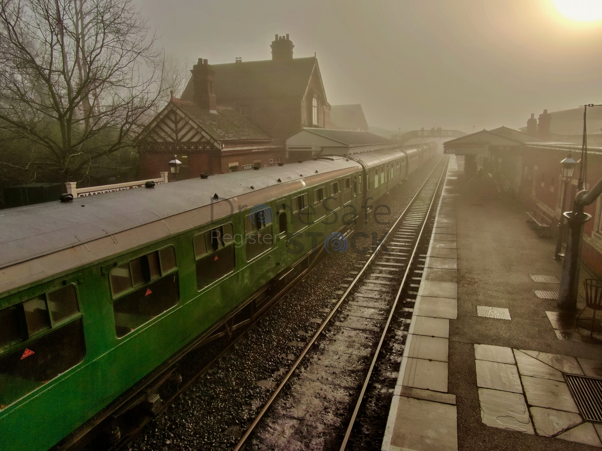Green railway carriages from Steam train in railway station - 12 Megapixels