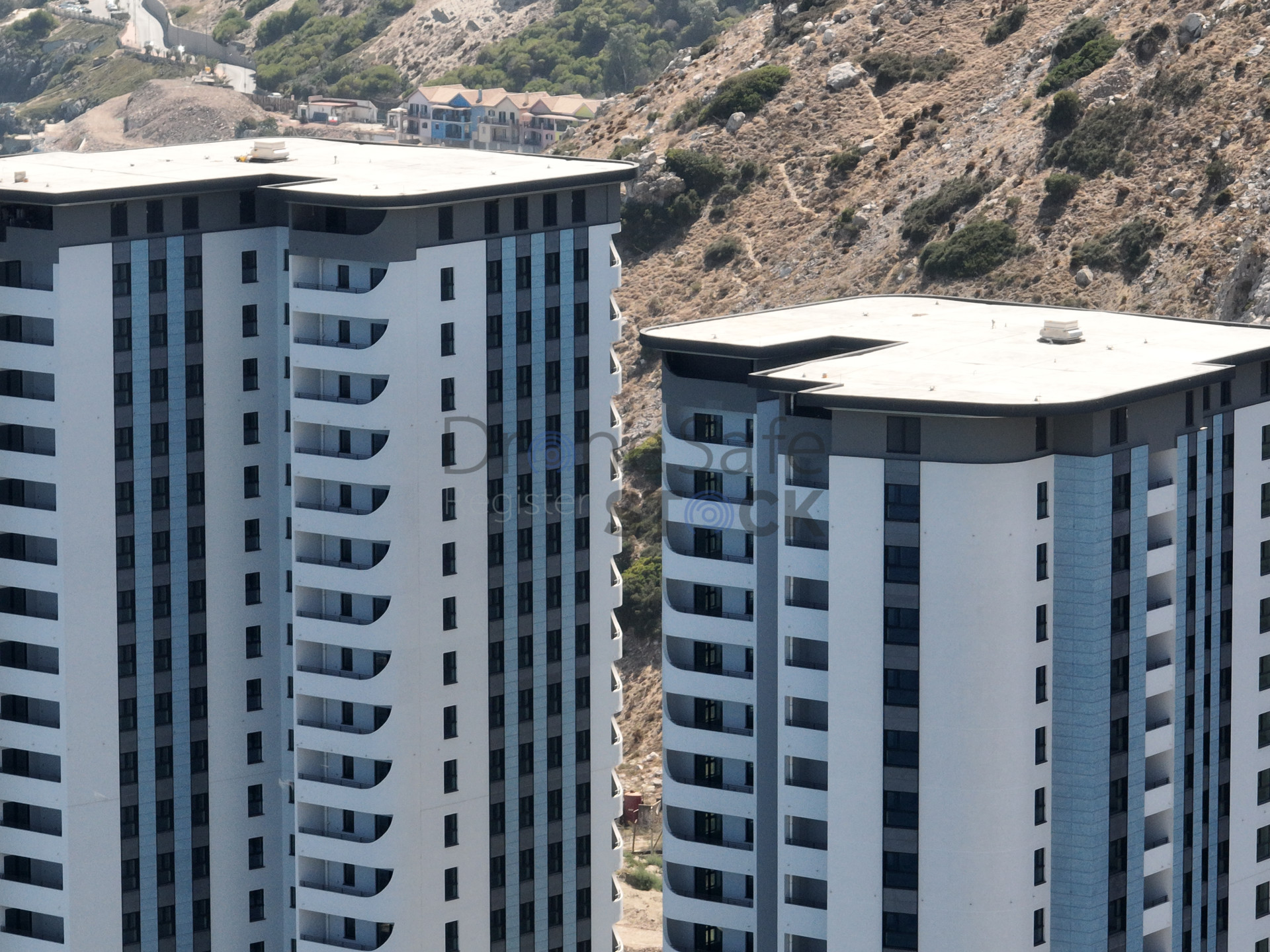 Hassan Centenary Terraces Gibraltar. new development and construction. Eastern Beach. British Territory. Drone Aerial Photography.