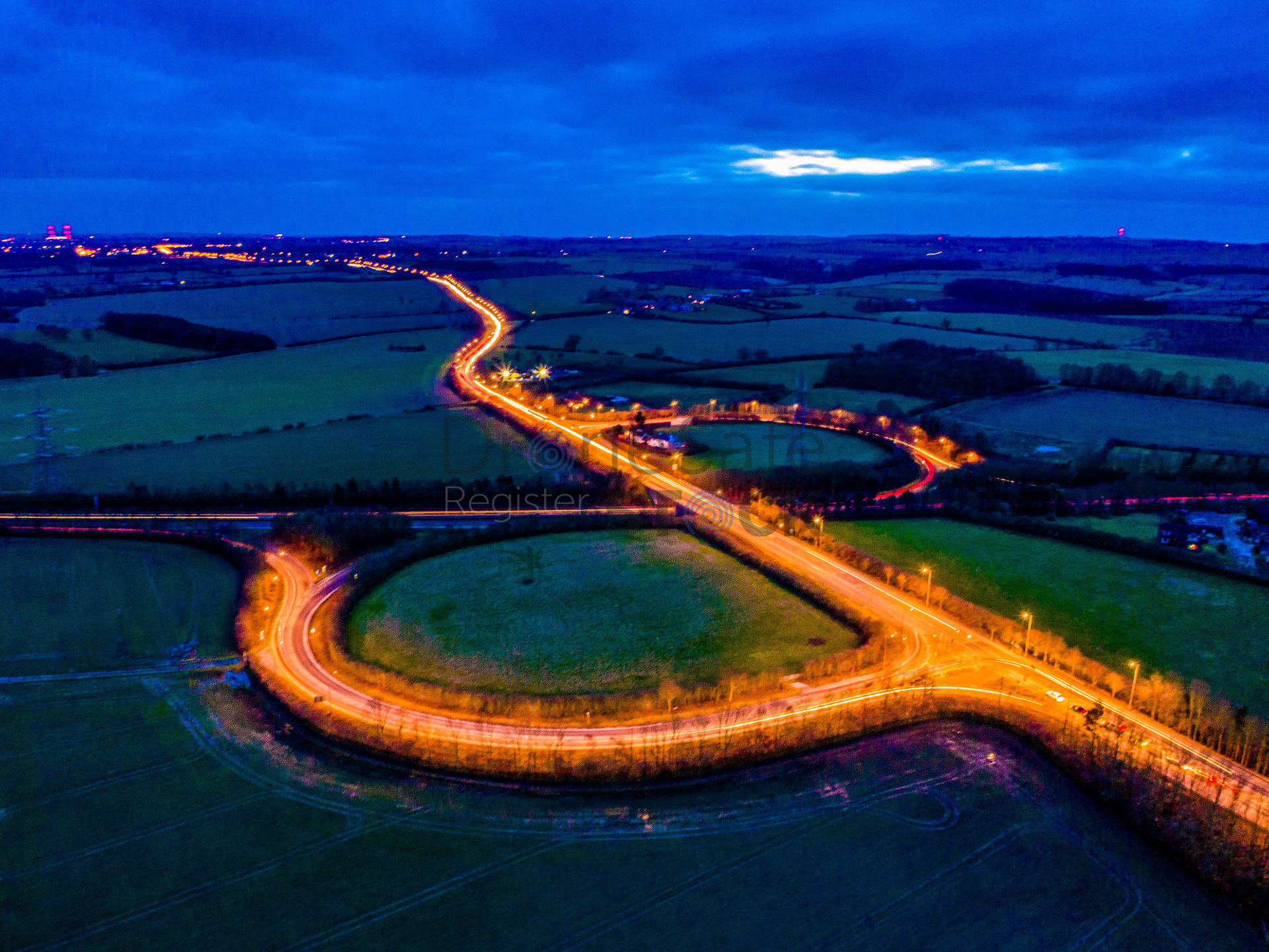 Jokcs Lodge in Beverley east Yorkshire at dusk with light trails