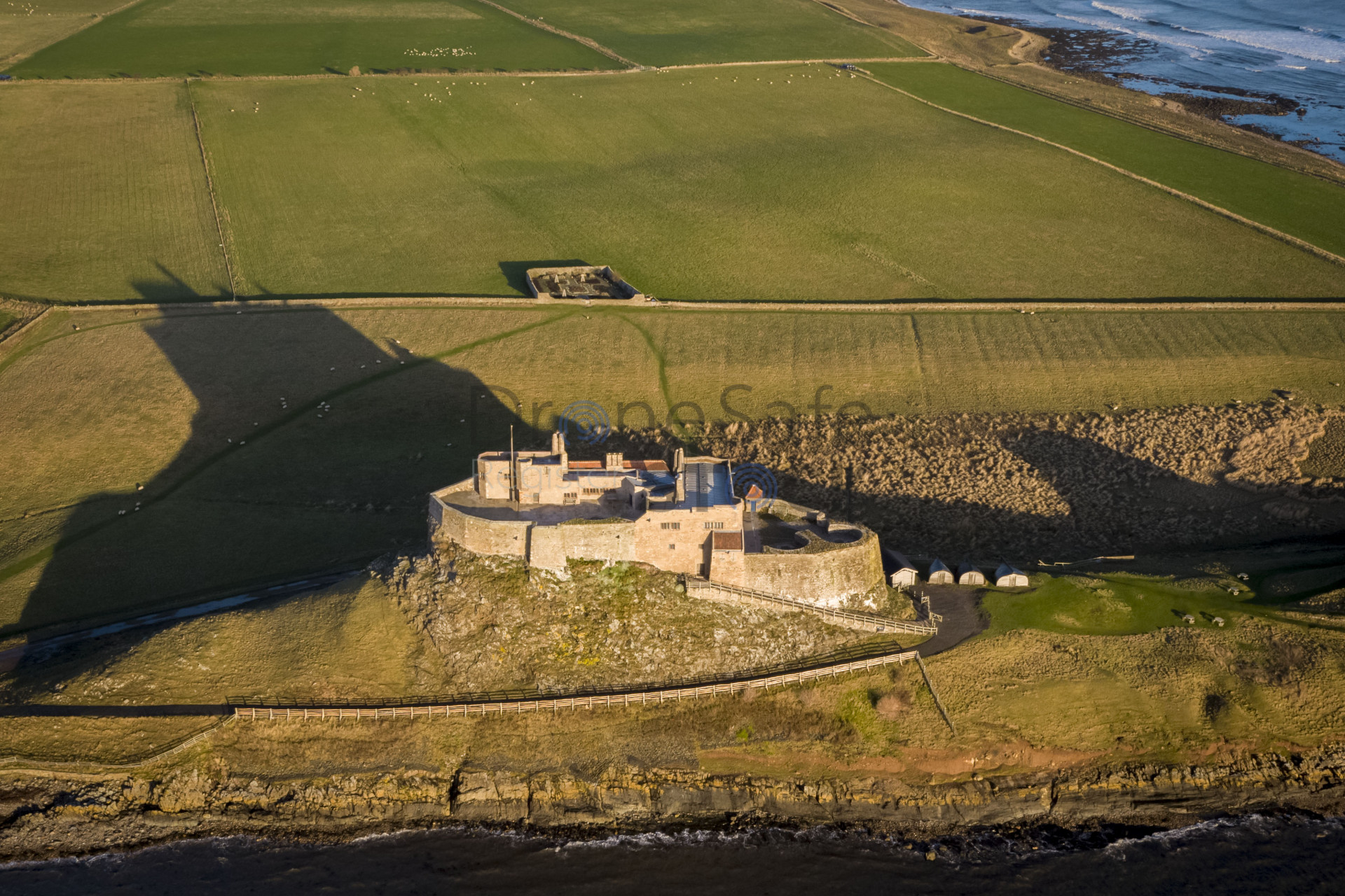 Giant shadows set behind the castle of Lindisfarne on Holy Island