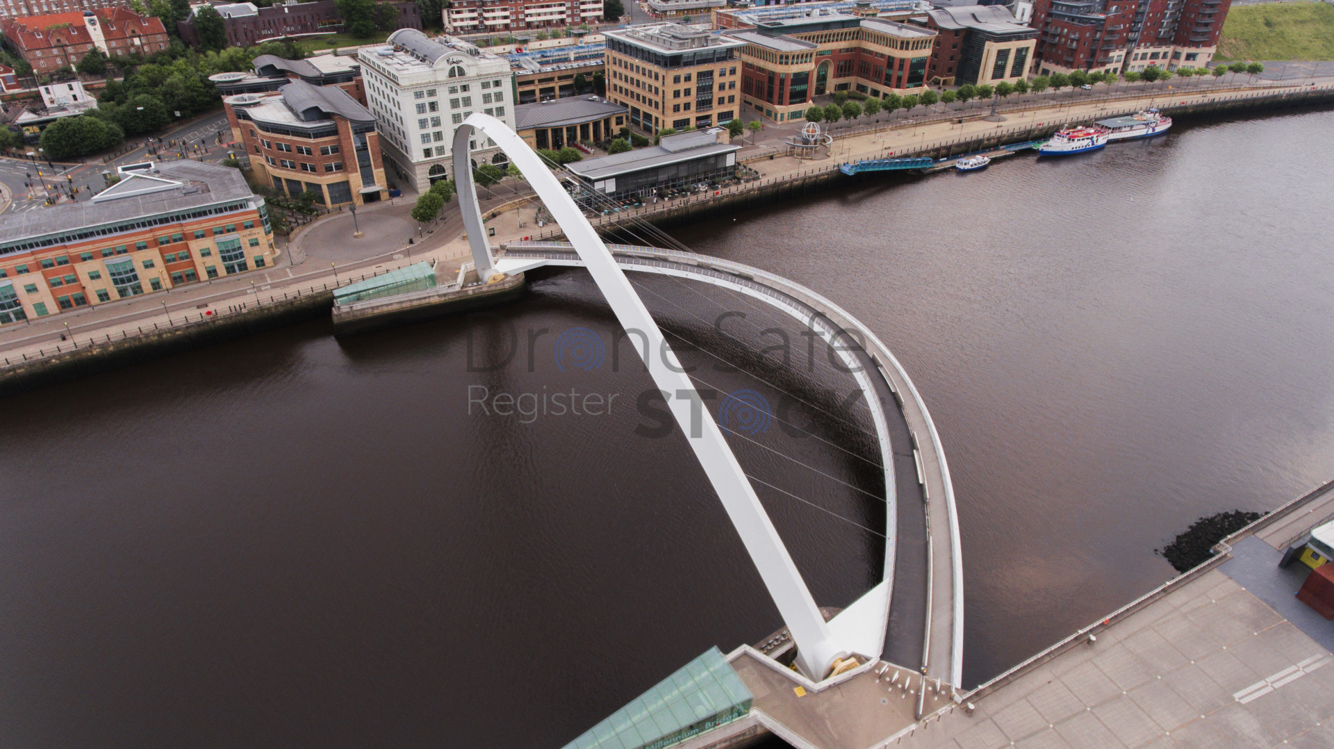 A view from above the millenium bridge in Newcastle Gateshead along the quayside