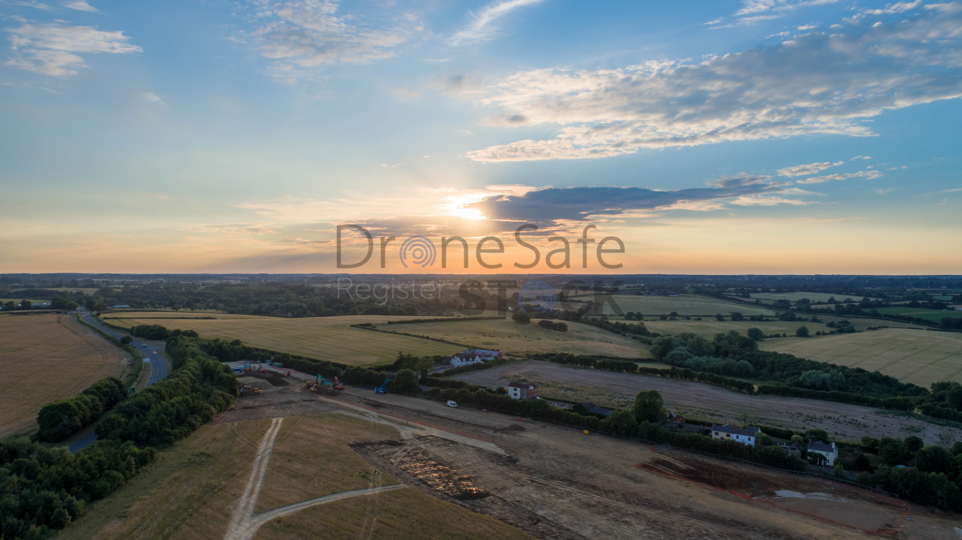 Sun setting over a construction site