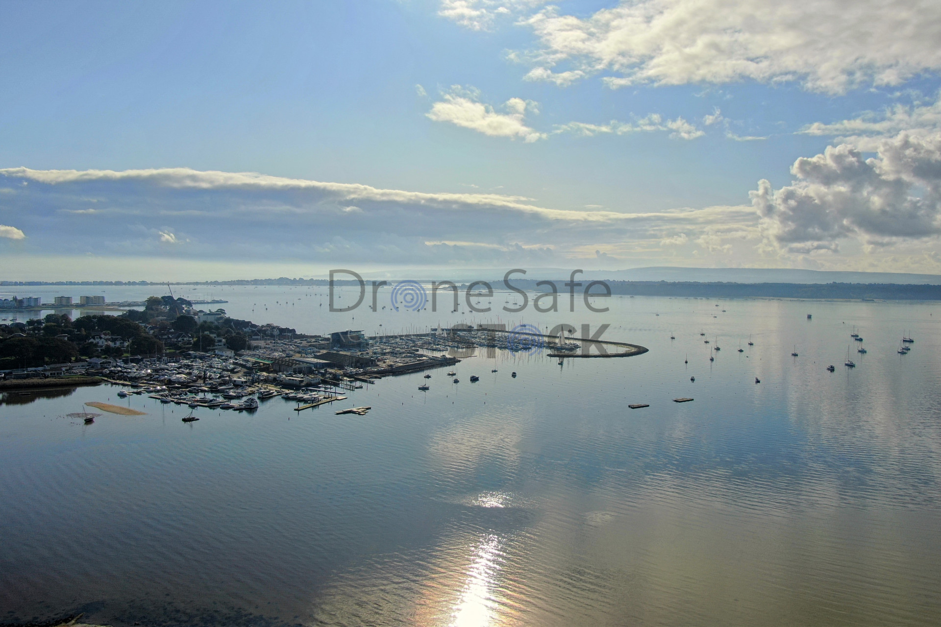An aerial shot of the Whitecliff marina in Poole Harbour